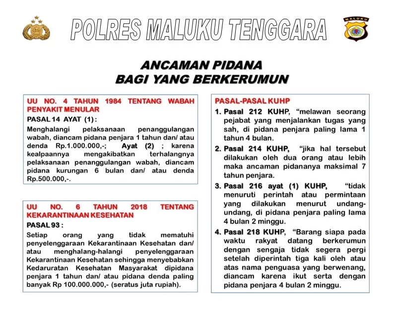 Sekda Malra berharap, masyarakat harus mentaati semua himbauan Pemerintah dan TNI – Polri, karena wabah virus Corona Covid-19 sangat berbahaya dan tidak mengenal siapapun juga.