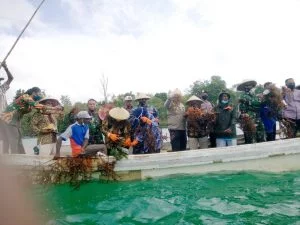 Walikota Tual Naik Perahu Panen Raya Rumput Laut