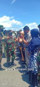 Saat tiba di Makodim 1503/Tual, Danrem 151 / Binaiya, menerima laporan Dandim 1503/Tual dan Jajar Kehormatan.