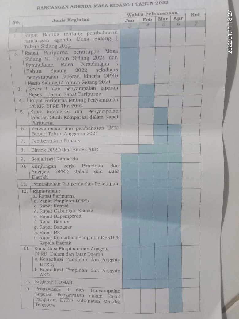 Tual News – DPRD Kabupaten Maluku Tenggara, diawal tahun 2022, menetapkan tujuh belas agenda pada masa sidang pertama tahun 2022 dalam rapat paripurna DPRD Malra, selasa ( 11/1/2022 ).