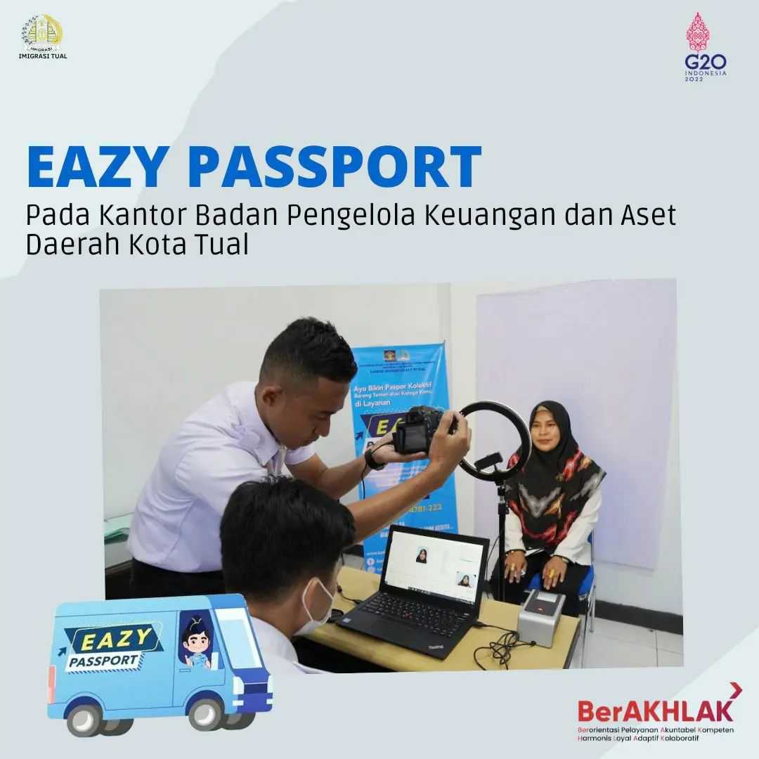 Tual News – Pelayanan Eazy Pasport adalah layanan paspor kolektif yang dilaksanakan di luar Kantor Imigrasi, dengan petugas turun langsung ke lokasi pemohon dengan mengunakan mobil unit layanan paspor keliling.