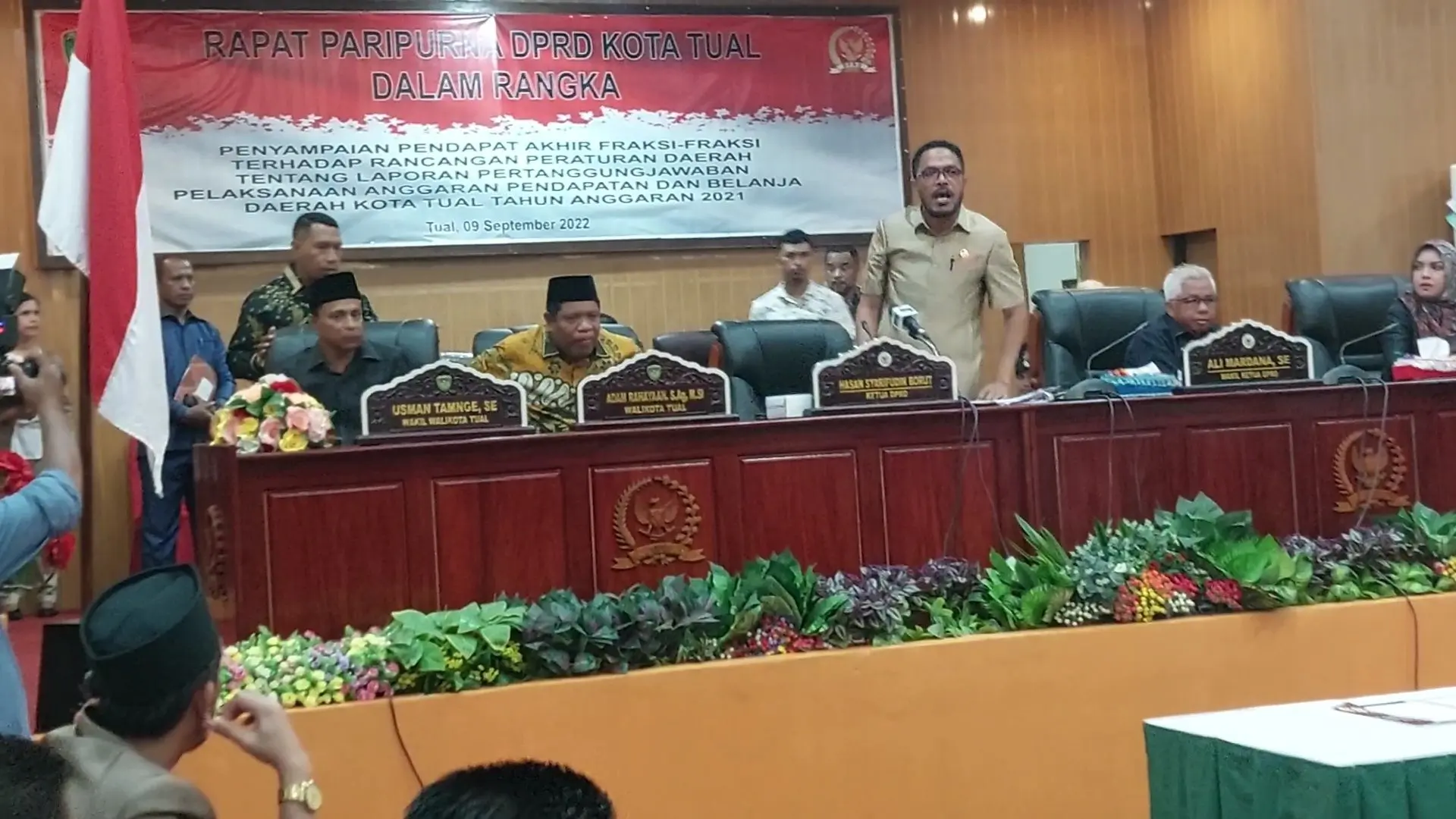 Tual News – Rapat Paripurna DPRD Kota Tual dalam rangka penyampaian pendapat akhir fraksi fraksi terhadap rancangan perda tentang pelaksanaan APBD Kota Tual tahun 2021, Jumat ( 9/9/2022 ) pukul 14.30 WIt di Kantor DPRD Kota Tual berlangsung ricuh.