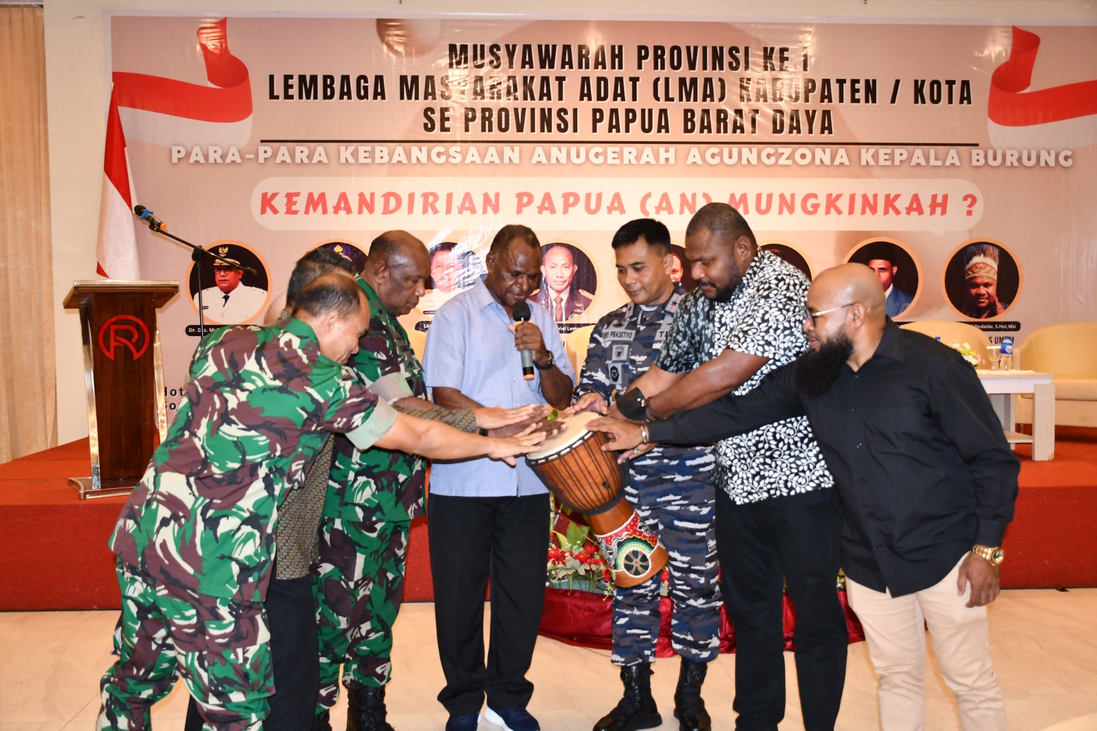 Ikut hadir dalam kegiatan ini, Danrem 181/PVT Brigjen TNI Juniras Lumbantoruan, S.Sos., M.Si., Danlantamal XIV/Sorong beserta pejabatnya, Korsmin Pangkoarmada III, Kasi Intel Kasrem 181/PVT, Dandim 1802/Sorong, Kaposda BIN Sorong, Rektor Unimuda Sorong, Ketua Fraksi Otsus, George K. Dedaida, S.Hut., M.Si. Plt, para Ketua LMA jajaran Papua Barat dan Papua Barat Daya, para Kepala Suku, Aliansi Masyarakat Adat Nusantara, para Toda, Togadan Toma dan lembaga terkait lainya.