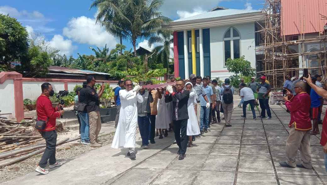 ” Mari kita bersatu dan bergotong royong, melalui kerja keras serta keringat yang kita miliki untuk selesaikan pembangunan Gereja ini, sehingga segera dihabiskan untuk kepentingan bersama umat Katolik, ” Ajak Ketua DPRD Provinsi Maluku.