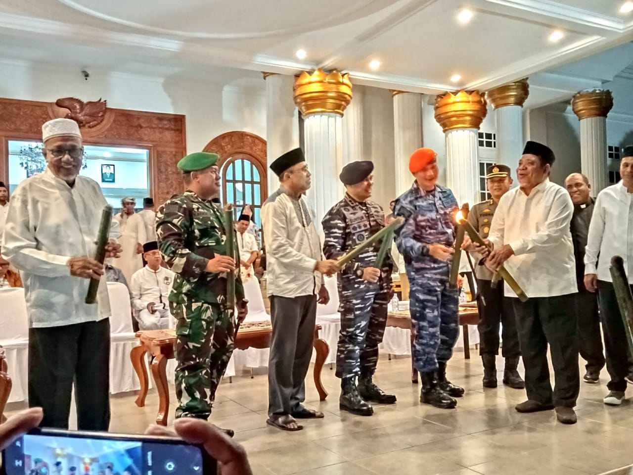 Turut hadir dalam kegiatan pawai obor kali ini, Danlanal Tual Letkol Laut (P) Guntur Alamsyah, Dandim 1503/Tual Letkol Inf Kadek Muliarsa, Kapolres Tual AKBP Prayuda Widiatmoko, dan para tokoh agama dan tokoh adat Kota Tual.