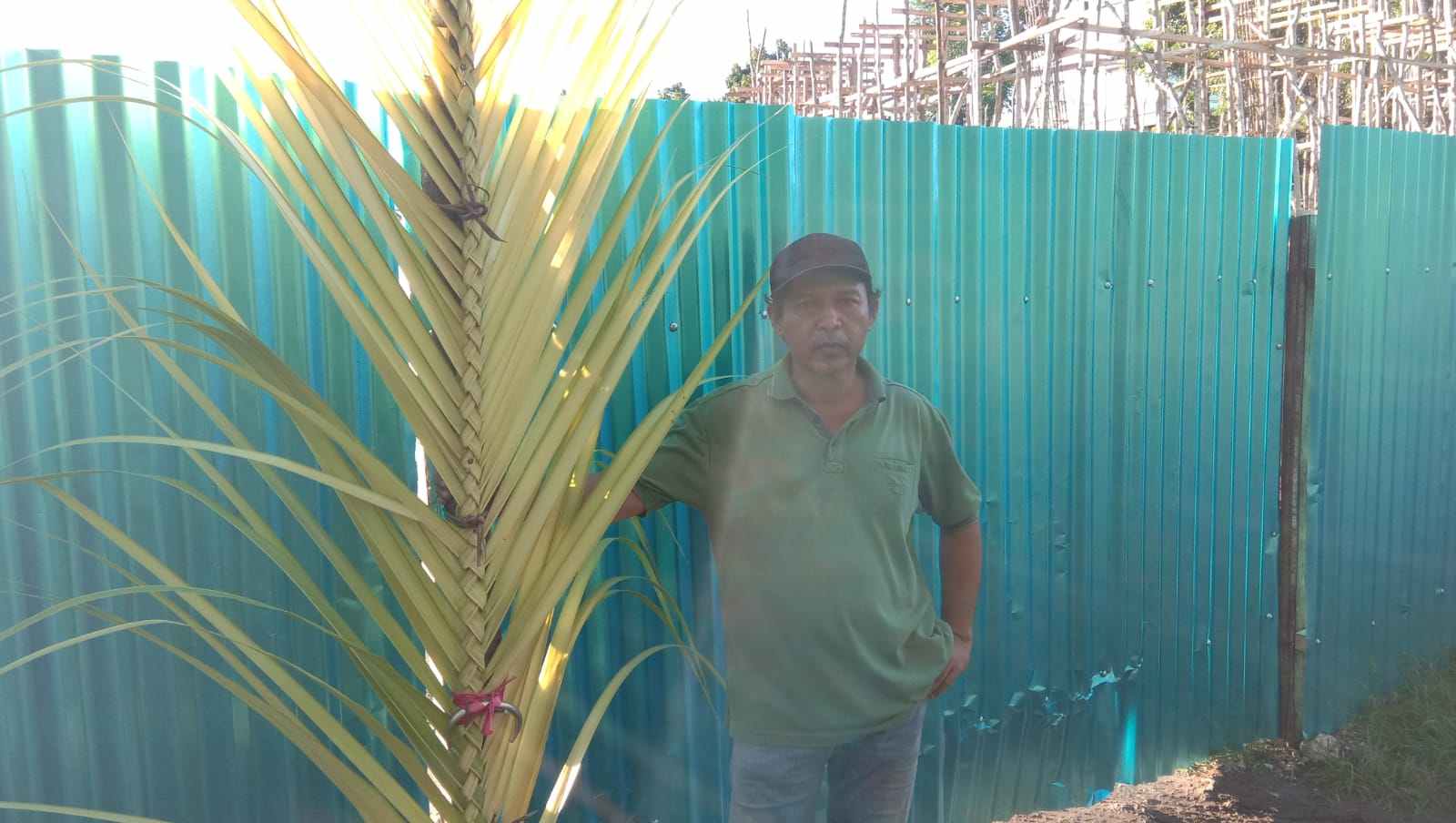 Satu buah sasi daun kelapa putih yang ditanam tepat dipintu masuk lokasi pekerjaan proyek yang dibiayai APBD Kabupaten Malra 2023, ditanam Jemy Renyut yang mengklaim sebagai ahli waris pemilik tanah, Rabu ( 17/5/2023) sekitar pukul 07.00 WIT.
