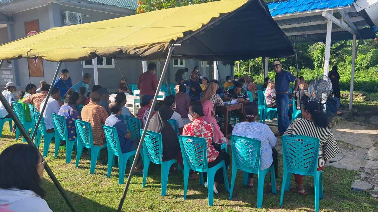 Tampak ratusan warga masyarakat di Maluku Tenggara dan Kota Tual sangat antusias dengan pengobatan dan pelayanan kesehatan gratis dari tim flying specialist Diskesau.