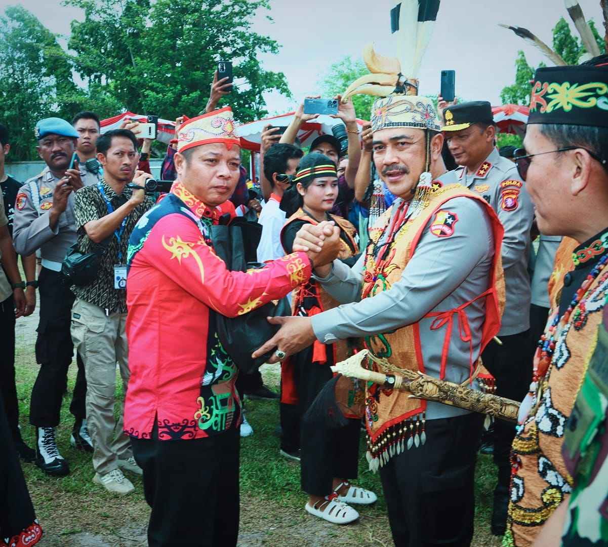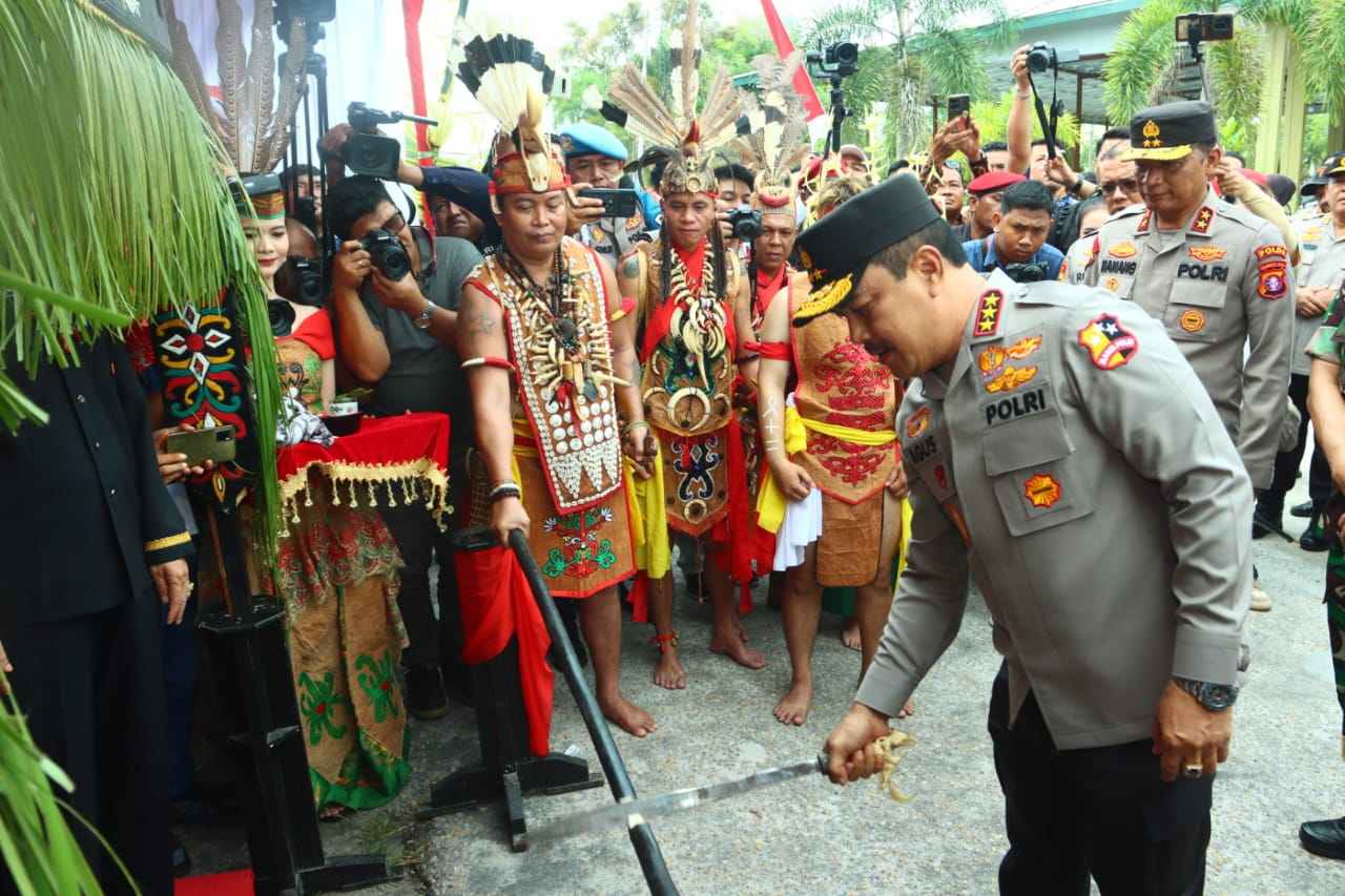 Kehadiran mantan Kabareskrim Polri tersebut, disambut dengan acara Adat Dayak potong pantan dan tampung tawar dipimpin Damang Jekan Raya Kota Palangka Raya Bapak Kardinal Tarung.