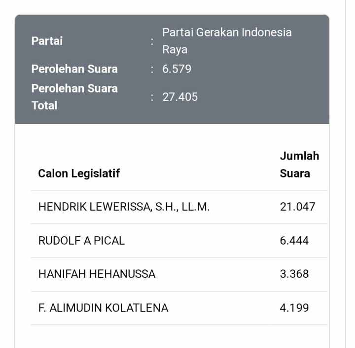 Untuk diketahui perebutan empat kursi DPR RI dapil Maluku masih bersaing ketat hingga hari ini, sebab hasil sementara Sirekap KPU yang dipublikasikan masih terus bergerak berdasarkan data yang masuk,sesuai form C/D KPU di TPS.