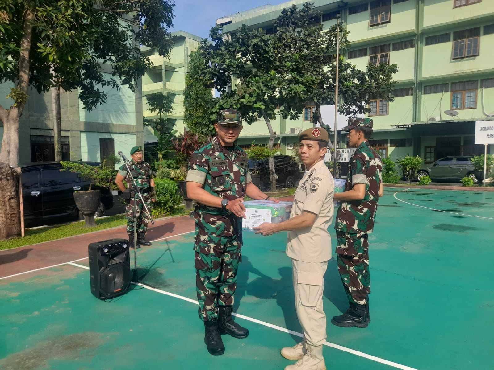 mengambil apel pagi sekaligus memberikan bingkisan Idul Fitri dari Pangdam Jaya/Jayakarta kepada seluruh personel Bintaljarahdam Jaya.
