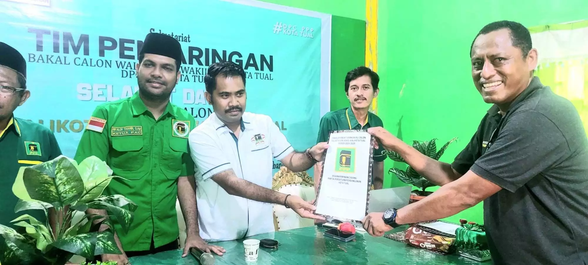 Pantaun Media Tual News, awalnya Ketua Tim Penjaringan PPP Kota Tual, Wahyudin Ingratubun, S.H, ucapkan selamat datang kepada Tim Pemenangan Balon Wali Kota Tual, Aiysa Renhoat, Anggota DPRD Kota Tual asal Partai Keadilan Sejahtera ( PKS ) yang sudah hadir di Sekretariat PPP mengambil formulir pendaftaran, siap maju Calon Wali Kota Tual, periode 2024-2029.