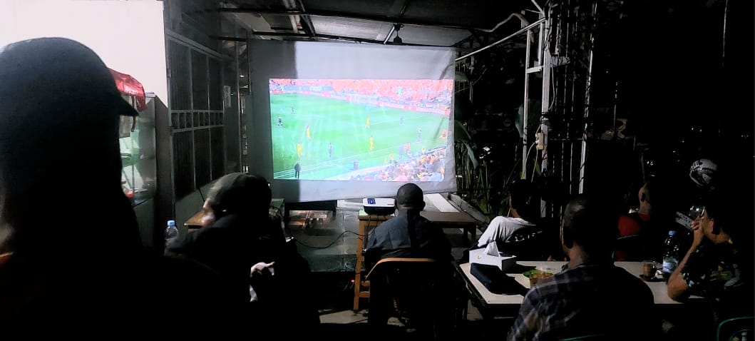 Tampak puluhan warga Kei dari berbagai latar belakang pendidikan hadir menyaksikan nonton bareng bola kaki tersebut.