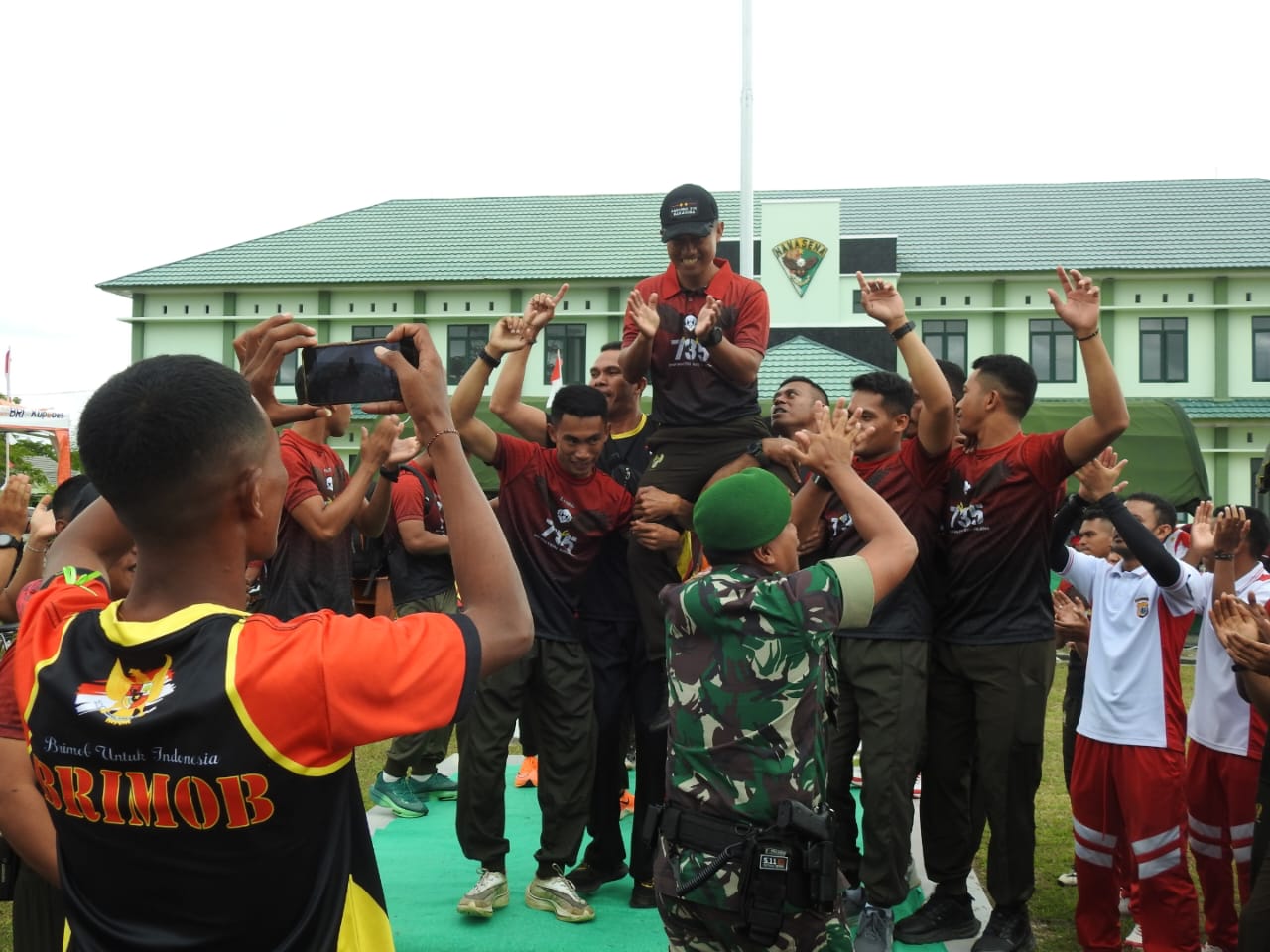 Danyonif 735/NWS, Letkol Inf Andi Agus Salim S.I.P mengakui, maksud dan tujuan kegiatan olahraga bersama itu untuk meningkatkan tali silaturahmi dan persaudaraan serta memperkuat solidaritas dalam melaksanakan program pemerintah menghadapi Pilkada mendatang.