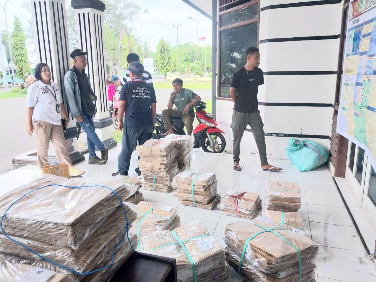 Langgur- Logistik Pemilihan Gubernur dan Wakil Gubernur Maluku serta Bupati dan Wakil Bupati Kabupaten Maluku Tenggara periode 2024-2029 mulai tiba di gudang Logistik KPU Kabupaten Maluku Tenggara.